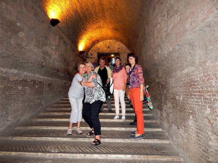 Am letzten Reisetag erhielt die Pilgergruppe am Morgen den Reisesegen in der Kirche des Klosters. Nachdem sich alle herzlich von den Padres und den Küchenfeen verabschiedet hatten, ging die Fahrt zur St.Sebastianus Katakombe, wo gemeinsam vor dem Grab des heiligen Sebastian gebetet wurde.Am Flughafen verabschiedeten sich die Teilnehmer von Carlo, der die ganze Zeit den Bus sicher und souverän durch das römische Verkehrschaos gesteuert hatte.Trotz der Flugverspätung läuteten in Kommern die Glocken als die Pilgergruppe am Dienstagabend wohlbehalten zurückkehrte.Fast wohlbehalten: Laut Statistik der zuständigen medizinischen Fachkraft waren in vier von fünf Stürzen Mitglieder der KG betroffen wobei nur eine von sechs zeitweise verloren gegangenen Personen aus den Reihen der KG stammten.